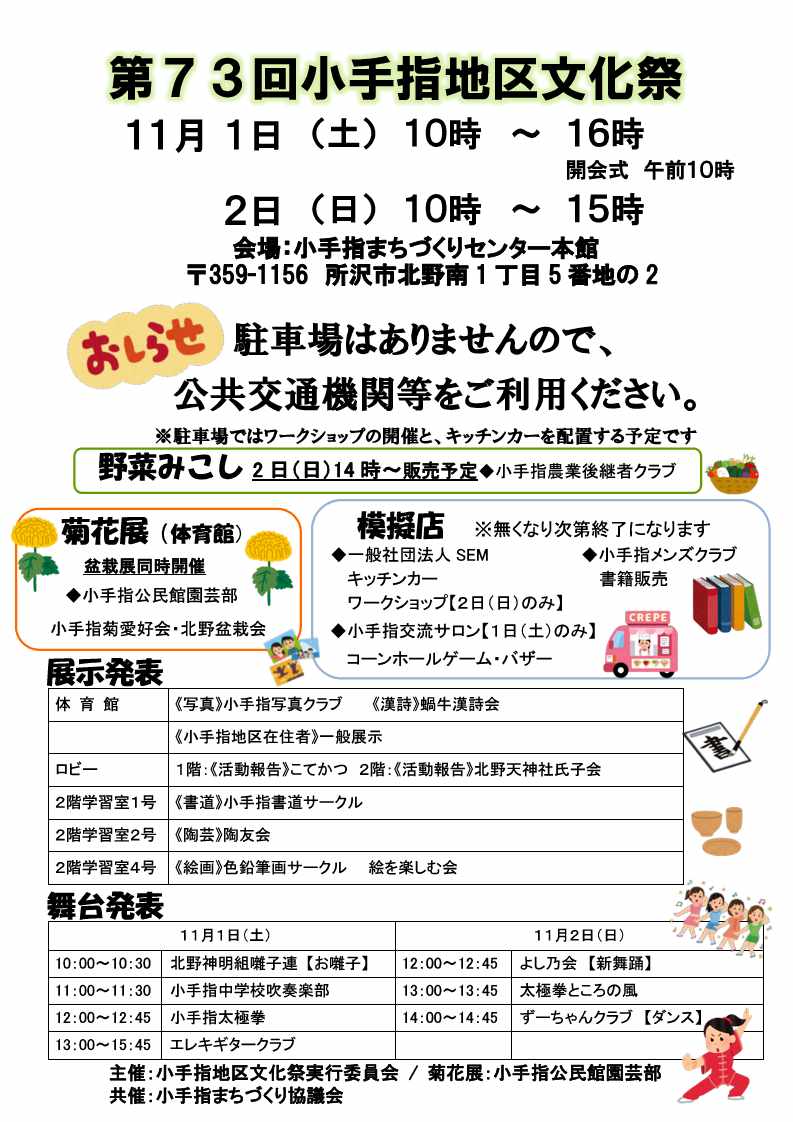【11月1日から11月2日】第73回小手指地区文化祭
