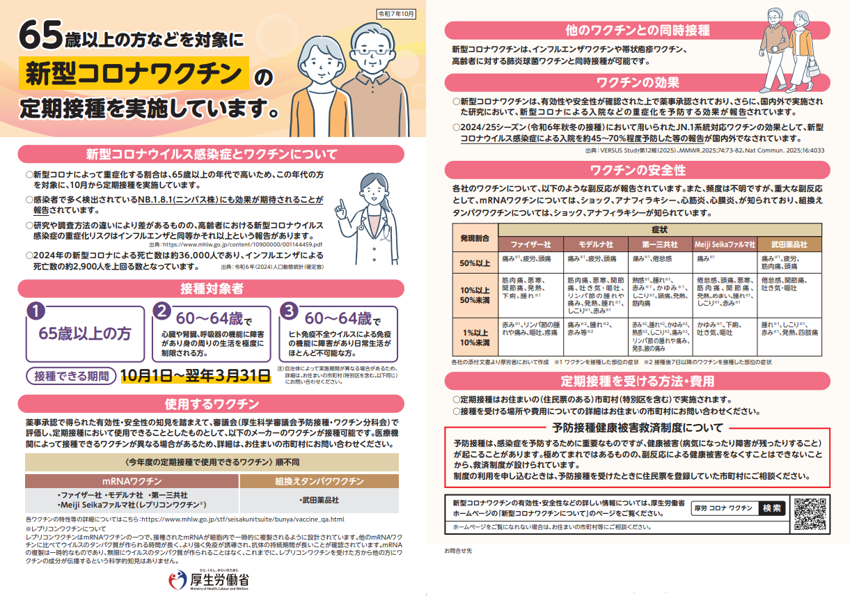 - 実施期間内であっても、ワクチンの在庫状況等により接種できない場合があります。