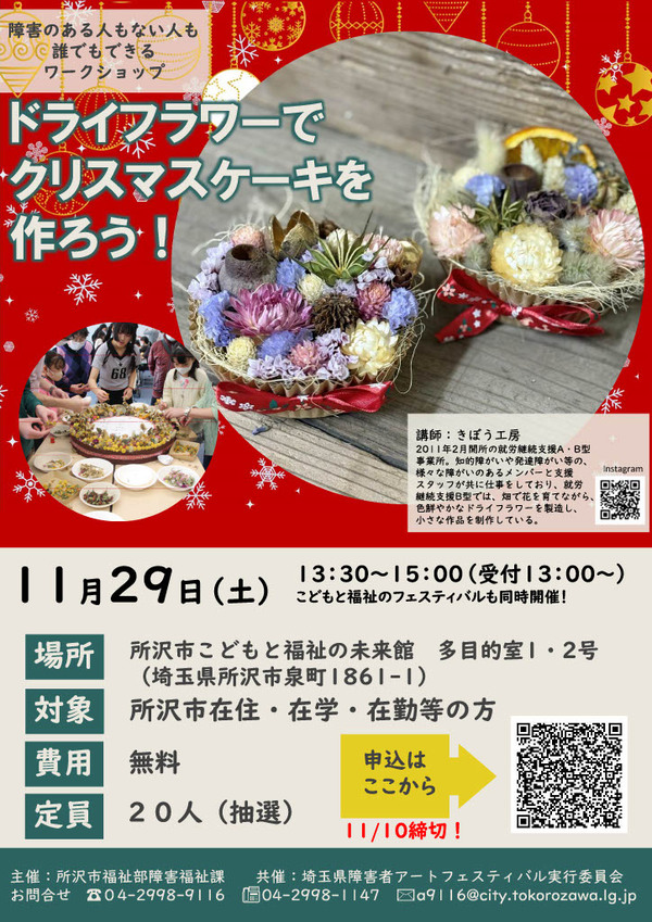 障害のある人もない人も誰でもできるワークショップ「ドライフラワーでクリスマスケーキを作ろう!」を開催します