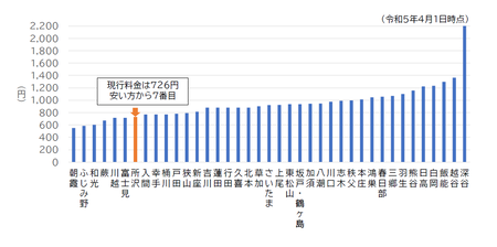 所沢市は、県内他市と比較しても安い料金設定を維持してきました。